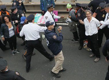 Centenas de pessoas foram presas na cidade de Nova York, nos EUA, neste sábado (1º), durante uma manifestação promovida pelo movimento Occupy Wall Street (Ocupem a Wall Street, coração financeiro da cidade), com críticas ao mercado financeiro e sua influência sobre Washington. De acordo com o jornal The New York Times, as mais de 700 pessoas foram detidas ao tentar atravessar a Ponte do Brooklyn, que liga o bairro à ilha de Manhattan. "Os manifestantes que usaram a passagem para pedestres não foram presos, apenas os que impediram o tráfego de veículos", disse o porta-voz da polícia local, Paul Browne. Já os manifestantes disseram terem sido enganados pelos policiais, ao alegarem que foram eles que permitiram que centenas de pessoas subissem a ponte. Os detidos foram algemados e conduzidos a diversas delegacias e só começaram a ser liberados no início da madrugada. Os protestos contra o mercado financeiro, que se espalham por outras cidades americanas, como São Francisco e Washington, pedem a prisão do presidente do Banco Central norte-americano (Federal Reserve), Ben Bernanke, “por todo dinheiro que ele usou dos cidadãos para salvar os bancos", segundo um dos ativistas.